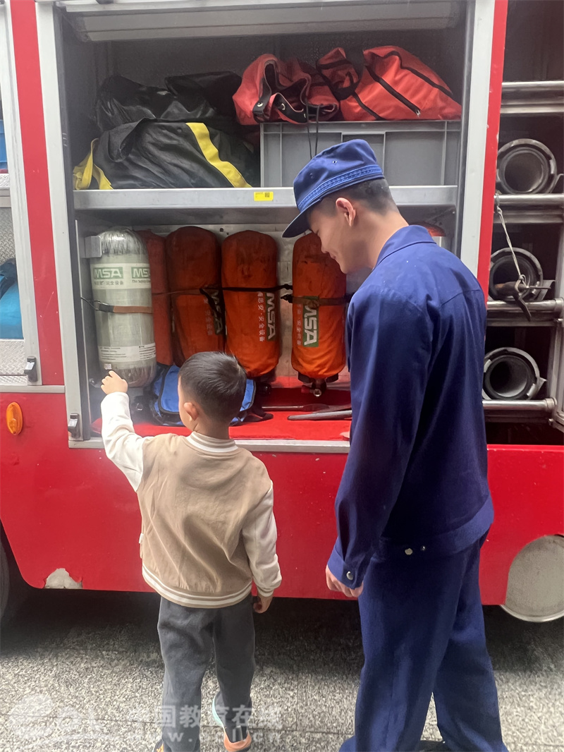 活动伊始,消防员向师生们展示了专业的消防装备。厚重的消防服、防火材质的头盔、高压水枪等专业设备一一亮相。消防员详细讲解了这些装备的功能和使用方法,让师生们对消防工作有了更直观的认识。“这件衣服能防高温,穿上它才能冲进火场救人”,消防员生动的解说让孩子们听得入神。
