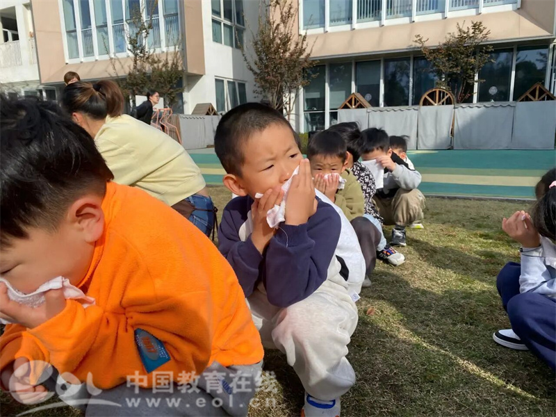 当演习信号响起时,各班老师迅速组织幼儿用湿毛巾捂住口鼻,弯腰沿着指定路线有序撤离。整个过程中,师生配合默契,没有出现推挤和慌乱现象,所有人员都在规定时间内安全疏散到操场。