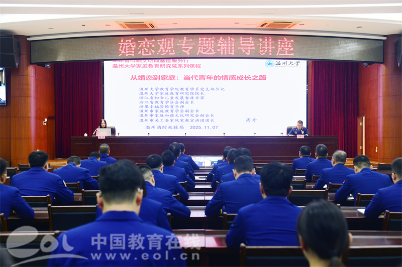 中国教育在线浙江站讯 (记者 陈显婷 通讯员 章志图 曹晨雨 张帆)11月7日上午,温州消防救援支队近2000名消防救援人员通过“线上+线下”的形式,共同参与了由温州大学教育学院教育学系党支部书记周奇教授主讲的《从婚恋到家庭:当代青年的情感成长之路》专题讲座。