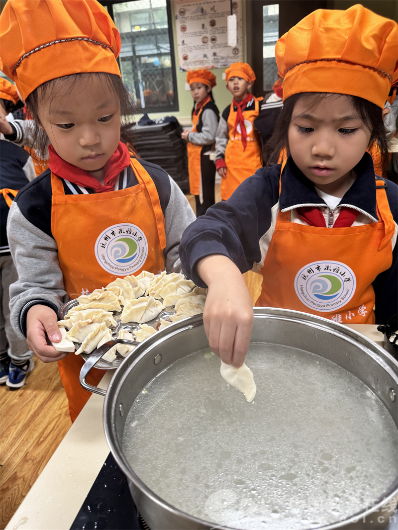 中国教育在线浙江站讯(编辑 邱彬鑫 通讯员 陈玉利 马吉利)“老师,我的饺子像小元宝!”“我要多放肉,带给爸爸妈妈吃!” 立冬当天,杭州市澎雅小学的中餐厅里满是欢声笑语,203班小朋友们在佘艳婷老师的指导下,用胖乎乎的小手包出了各种各样的立冬“暖心饺”。