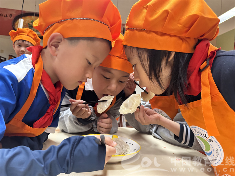 热气腾腾的饺子端上桌,孩子们捧着小碗,吹着气小口咬,鲜美的汤汁让大家眼睛发亮。“比超市买的好吃一万倍!”孩子们边吃边分享,把自己包的饺子递给老师,小小的教室里,满是立冬独有的温暖甜香。