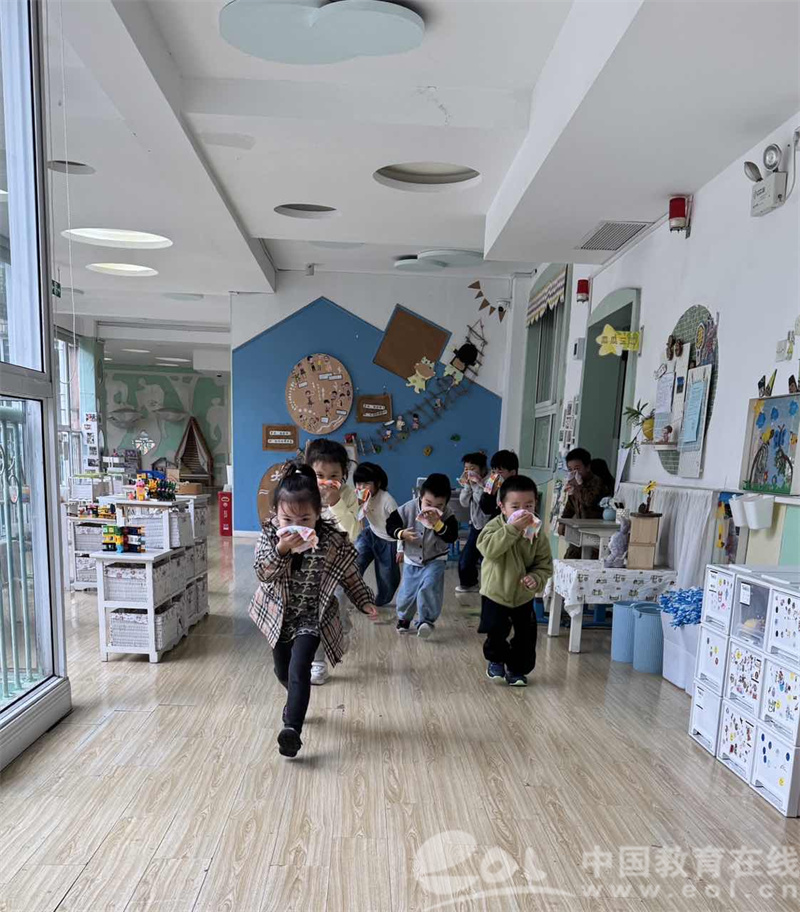 呜~呜~呜~随着急促的警报声响起,幼儿园全体师生迅速进入“紧急状态”!消防演习正式拉开帷幕。各班级教师迅速反应,按照预定疏散方案,沉着有序地组织幼儿用湿毛巾捂住口鼻,弯腰低头,沿着指定路线快速、安全地向操场空旷的安全区域疏散。疏散过程中,不推挤、不慌张,确保每一名幼儿都安全撤离。