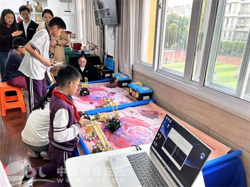 随后,代表团移步至脑科学AI科创示范基地。学校脑科学校队队员正在备战“2025世界机器人大赛·NeuroMaster脑科学人工智能挑战赛-浙江省选拔赛”。队员们凭借高度的专注力与默契的团队协作,精准操控设备完成挑战任务。屏幕上实时跳动的专注力数据、队员们全神贯注的神情与行云流水般的操作,生动演绎了脑科学与教育实践完美融合的精彩场景,赢得了代表团成员的连连赞叹。