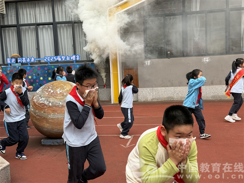 随着教学楼浓烟四起,消防警报声打破了校园的宁静。各班班主任及任课老师立即组织学生做好紧急疏散准备,学生们用湿毛巾或湿纸巾捂住口鼻,有序地从教室中撤离,通过安全通道来到安全场所。学生到达操场后,各班级迅速清点人数,确保没有落下任何一个人。整个疏散活动高效、有序、安全地完成,没有发生任何踩踏或碰撞事故。