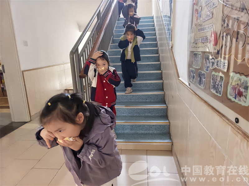一阵急促的消防警报声划破了校园的宁静,消防疏散演练正式启动。各班教师迅速反应,立即停止一切活动,在老师的带领下临“危”不乱。小班的宝宝们虽然年龄最小,但在老师的带领下,一个个用湿毛巾牢牢捂住自己的口鼻,弯腰低姿,神情专注;中班的孩子们显然已有经验,动作更加标准熟练,紧紧跟着队伍前行;大班的幼儿则充分展现了哥哥姐姐的榜样作用,不仅自己做得规范,还能提醒身边的小伙伴。