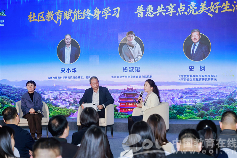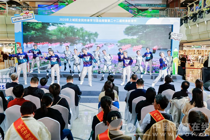 第三篇章“数字发展促智学”亮点纷呈,活动特别连线北京教科院终身学习与可持续发展教育研究所所长史枫,与现场的杨淑珺院长和宋小华院长一起,三位专家围绕社区教育发展前沿观点展开深度分享,为上城终身教育创新发展提供智力支持。现场,上城区新时代全龄课程也同步发布,涵盖老年教育、青年夜校、青少年职业体验及家庭教育等四大类,不断满足各个群体的多样化学习需求。最后,启动仪式在“乐龄舞动尚学风”的精彩表演中圆满落幕。