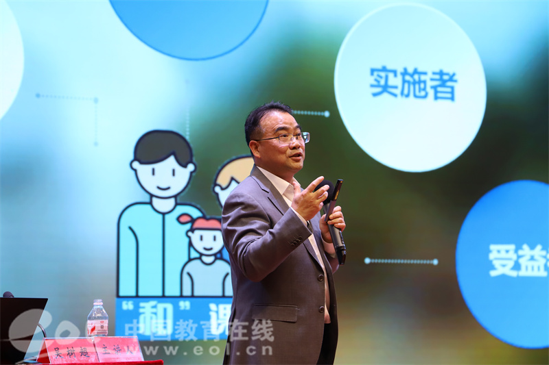 当天,吴树超从“精神空间、物理空间、虚拟空间”三个维度,结合采二实践案例,系统拆解未来学校建设的可落地路径。在物理空间改造方面,他提出的“顶层区域智造、中心城堡建设、围合建筑改造”立体化策略,通过开放校园活动场地、联动社区服务设施,构建“全域融通”教育生态,为教共体“校社协同育人”提供了可复制、可推广的样板。