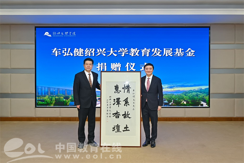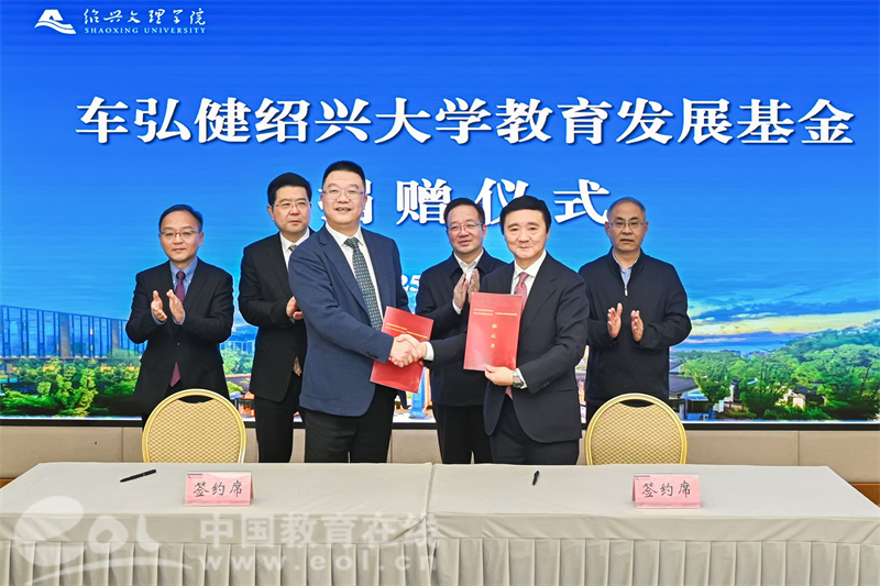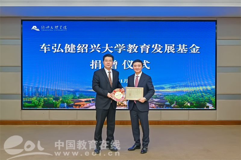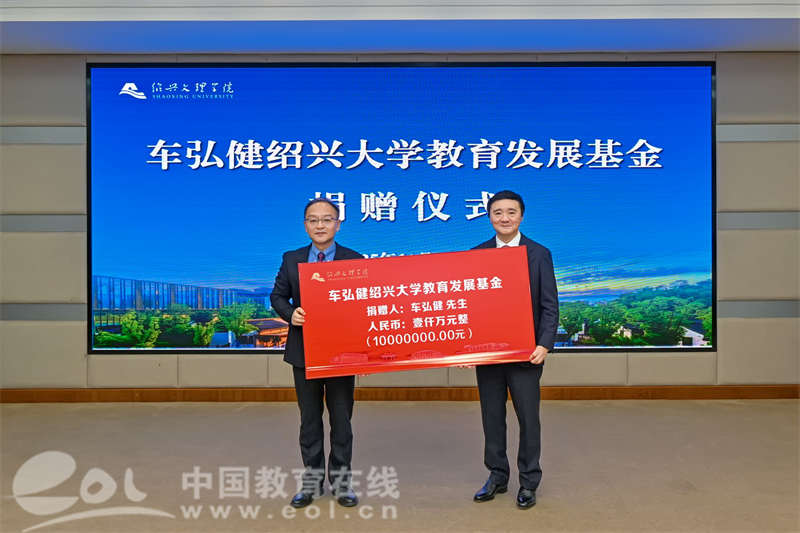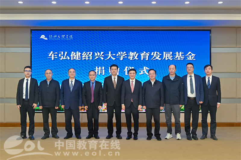 中国教育在线浙江站讯 (记者 陈显婷 通讯员 赵晗宇 摄影 张志远)11月13日上午,“车弘健绍兴大学教育发展基金”捐赠仪式在绍兴文理学院举行。全国政协委员、省政协常委、香港浙江同乡会联合会第一常务副会长车弘健先生慷慨捐资1000万元设立专项基金,用于支持学校学科专业建设、学术交流、基础建设和人才培养等工作。