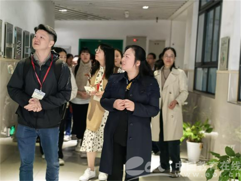 随后,在王宁书记、鲁小蓉校长、校办主任王聪老师等全程陪同下,师生代表团参观崇德校园。王书记介绍了崇德中学悠久的办学历史和深厚的化底蕴,解读“四求”校训、浙大名人班德育特色活动,并一同参观学生艺术作品和学习项目展示。