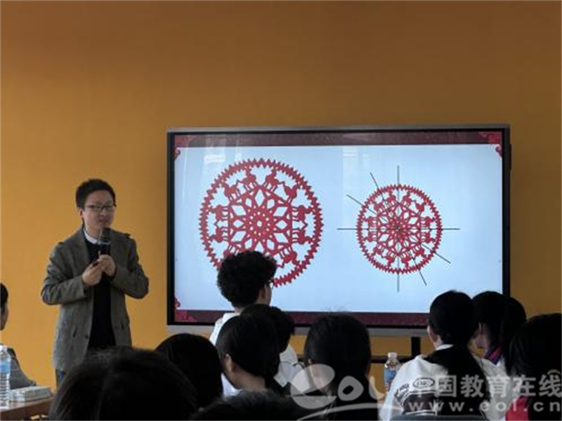 在图书阅览室轻松的氛围里,校办主任张明海老师为到访师生带来了一堂妙趣横生的创意剪纸马克杯制作实践课。学生在指导下用灵巧的双手转动卡纸,裁剪出一个个精致的纹理,创造了独属于自己的马克杯。以剪纸为媒感受中华传统文化的独特魅力,也寄托了两校友谊绵长的美好寓意。