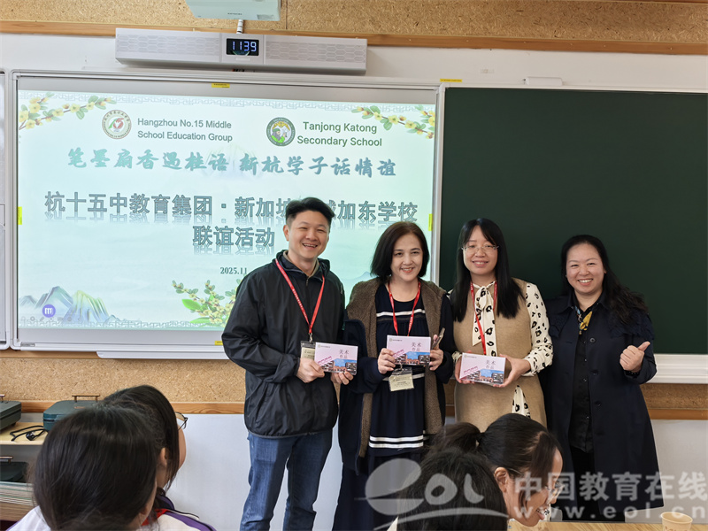 中国教育在线浙江站讯(编辑 邱彬鑫)“有朋自远方来,不亦乐乎”。11月10日至11日,新加坡丹戎加东中学师生代表团先后到访杭十五中教育集团浙大附初和崇德中学两校区并开展研学活动,集团校领导和校办主任老师全程陪同接待。两校师生在学习中体验文化,在交流中共话未来,共享这场沉浸式的文化交际与教育研讨之旅。