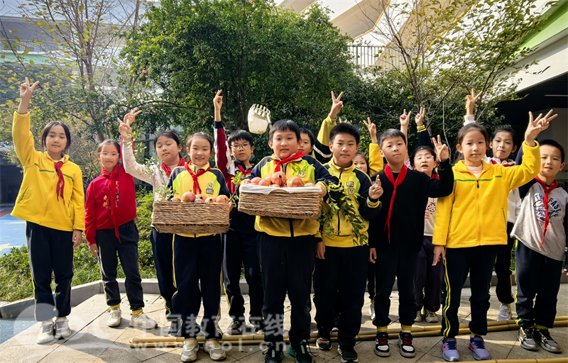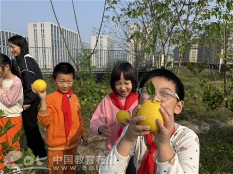 三年级的“寻味之旅”在橘园展开,学生们踮起脚尖采摘果实,细心摆盘展示,指尖沾染着果皮的清香,脸上洋溢着收获的喜悦。