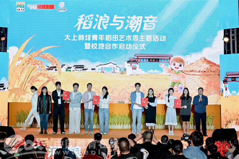中国教育在线浙江站讯(记者 陈显婷 通讯员 马越 薛景舒)稻浪声起,青年潮涌。11月15日,由浙江传媒学院、中共平阳县委组织部、中共平阳县委宣传部共同主办的“稻浪与潮音”大上林垟青年稻田艺术周主题活动暨校地合作启动仪式在平阳县昆阳镇成功举行。活动以青年视野挖掘乡土魅力,以传媒创意赋能乡村振兴,开启校地合作共育人才、共谋发展的新篇章。