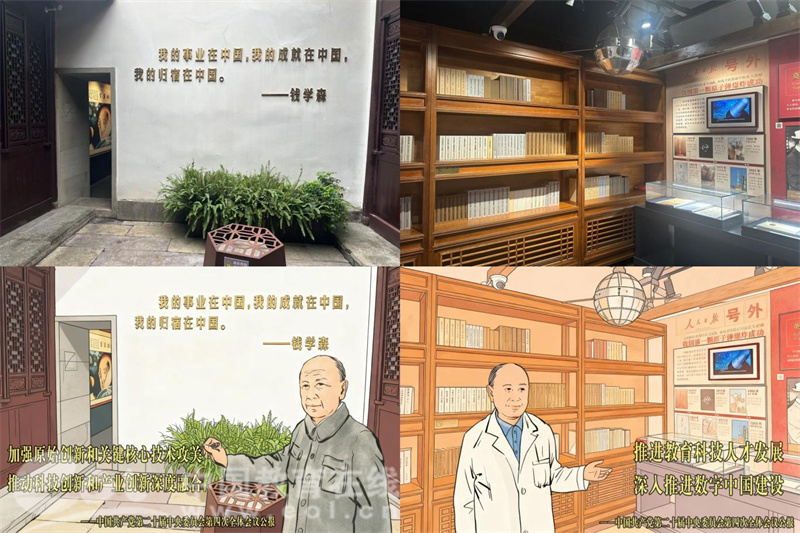 在故居庭院中,“AI明信片”互动环节备受学生欢迎。同学们利用现场测绘的建筑数据和校史影像素材,通过AI生成融合钱老生平与故居实景的动态明信片,并将党的二十届四中全会关于科教兴国的战略部署印制其上。一位同学表示想将明信片寄给高中母校,告诉学弟学妹“科学也可以很浪漫”。