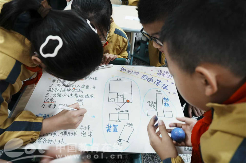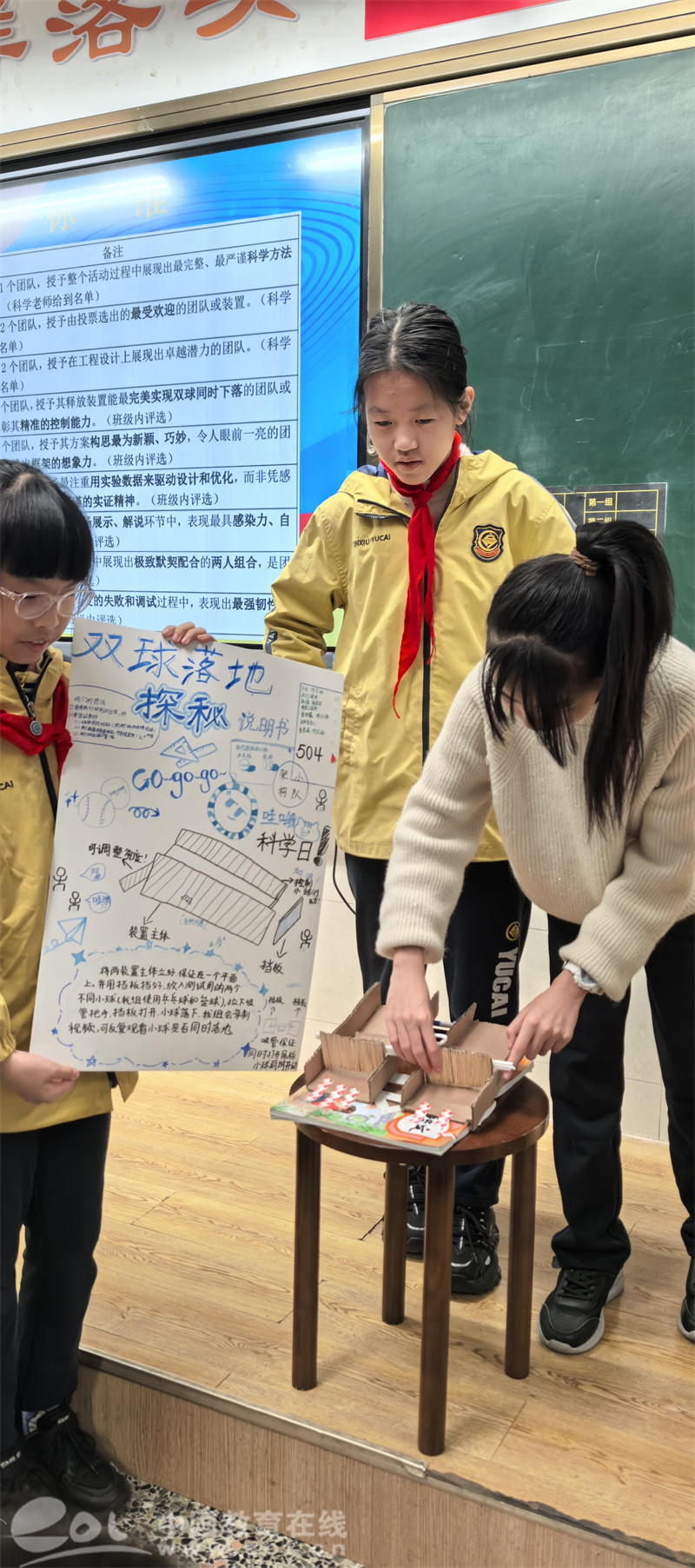 中国教育在线浙江站讯 (记者 陈显婷 通讯员 赵丽娜)“三、二、一,释放!”503班的于铠铭屏住呼吸按下开关,电磁铁瞬间失磁,两个小球从自制的纸板装置中精准坠落。