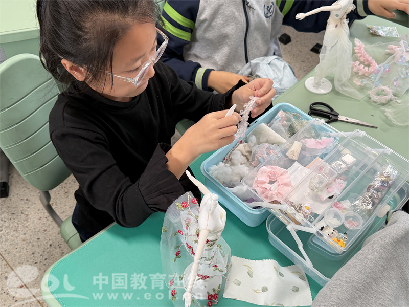 中国教育在线浙江站讯 (记者 陈显婷 通讯员 许静雅)在杭州市东润外国语学校210班的教室里,一群充满创意的“小小服装设计师”正专注地运用剪刀、针线和布料,将天马行空的想象转化为实物。