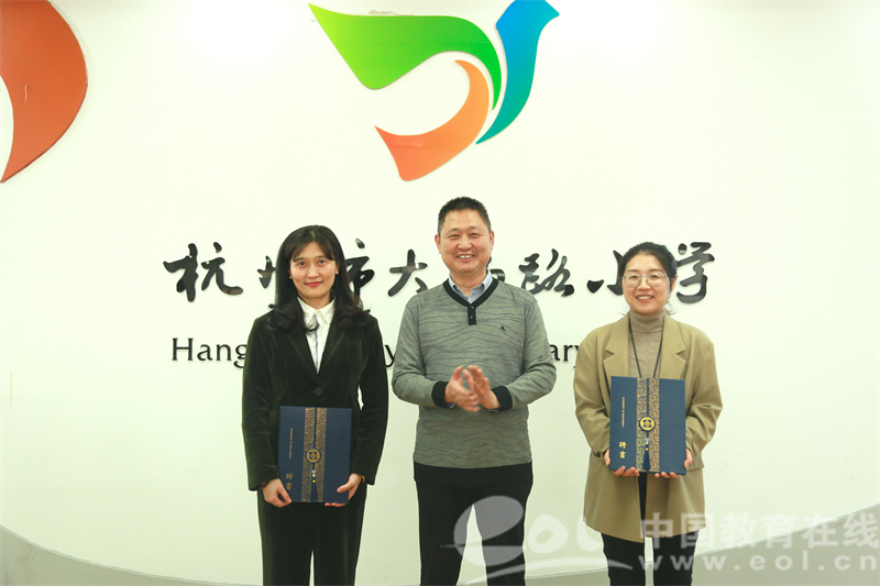 杭州市大禹路小学校长陈伟泉为浙江大学陈丽翠博士、浙江外国语学院陈丹教授颁发学校科研副校长聘书并签订协议。两位大学博士入驻小学校园,将定期协助教师申报课题,带领团队探索课程改革,从理论指导到实践落地,全程为学校教科研赋能,助力学校突破瓶颈,实现内涵式持续发展。