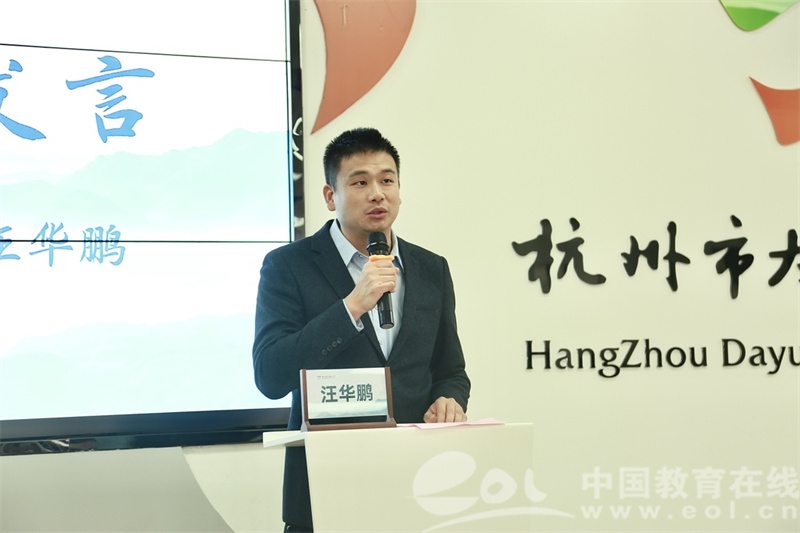 西湖区教育局副局长尹伟为张丽敏杭州市科研标兵工作室授牌。该工作室汇聚了西湖区中小学各学科教研骨干,将成为区域教育科研的孵化器与领航站。杭州市十三中副校长汪华鹏作为成员代表发言,他结合自身成长经历,分享对教育科研的理解,承诺将以工作室为纽带,与各位成员共同深耕教研、互学互鉴,把科研成果转化为课堂实效。