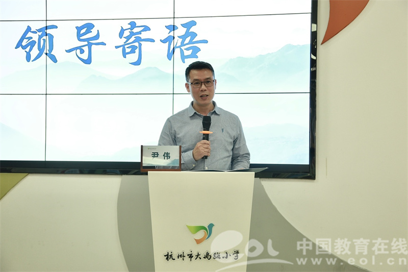 西湖区教育局副局长尹伟,对两项盛事的顺利举办表示热烈祝贺。他高度肯定大禹路小学在教育科研领域取得的显著成绩,针对博士驻点项目与工作室发展,提出三点期望:一是希望学校利用好博士驻点、工作室资源,让科研需求精准对接;二是希望博士团队深入一线课堂,从教学实际中发现问题、开展研究,打造出接地气、有实效的科研成果;三是希望张丽敏科研标兵工作室发挥辐射作用,联动联盟学校、各级资源开展课题共研、成果共享,带动区域教研水平整体提升。