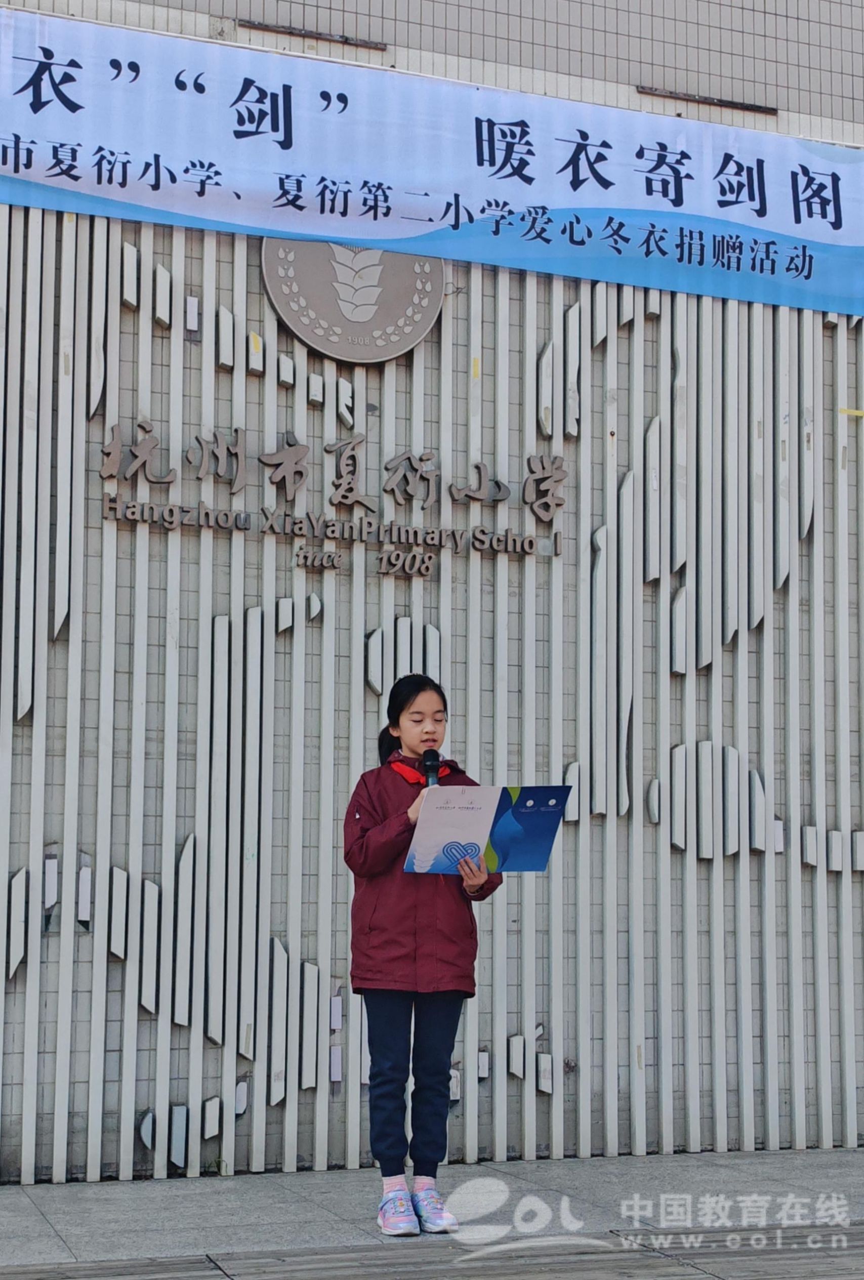 中国教育在线浙江站讯 (编辑 占尘雪 通讯员 郭晓鹏)11月20日,杭州市夏衍小学、夏衍第二小学校内暖意涌动,一场以“情系‘衣’剑,暖衣寄剑阁”为主题的爱心冬衣捐赠活动在这里温情启幕,为千里之外的四川省剑阁县小伙伴送去冬日温暖。
