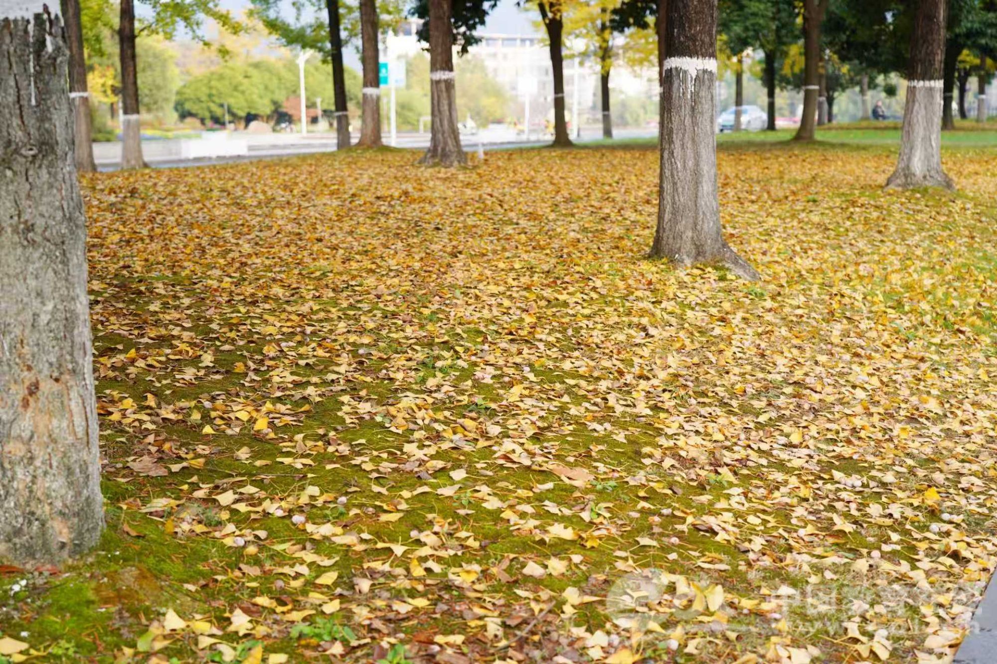 如今,浙江农林大学校园里的银杏树虽然落叶过半,但是地上厚厚的银杏叶已经成为了另一道美丽的风景。不少学生表示,每一片落叶,都成为了秋天的生态名片,学校温馨的举措,让校园的秋天延迟了几天,也让校园的美丽更延迟了几天。