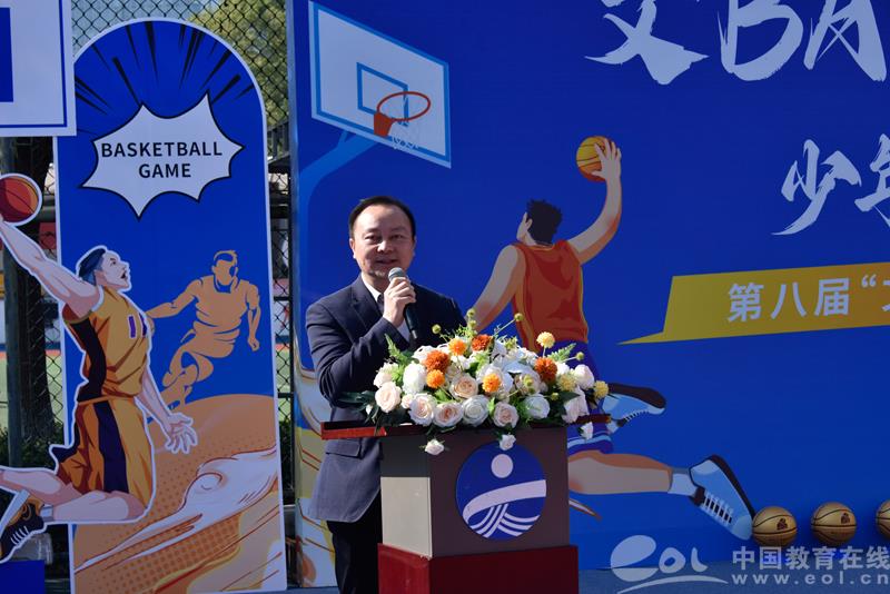 罗敏江校长为活动致开幕辞。罗书记在致辞中阐释,“文BA”不仅是“文海篮球联赛”的简称,更是文海人将文化底蕴与体育精神深度融合的体现。他指出,本届联赛旨在打破传统赛事边界,融合教师、家长共同参与,使篮球成为凝聚班级、联结家校、激发潜能的多元载体。罗书记强调,赛事以“安全、有序、公平、精彩”为原则,希望同学们尊重规则、展现风度,在拼搏中传递友谊,并预祝“文BA”圆满成功。