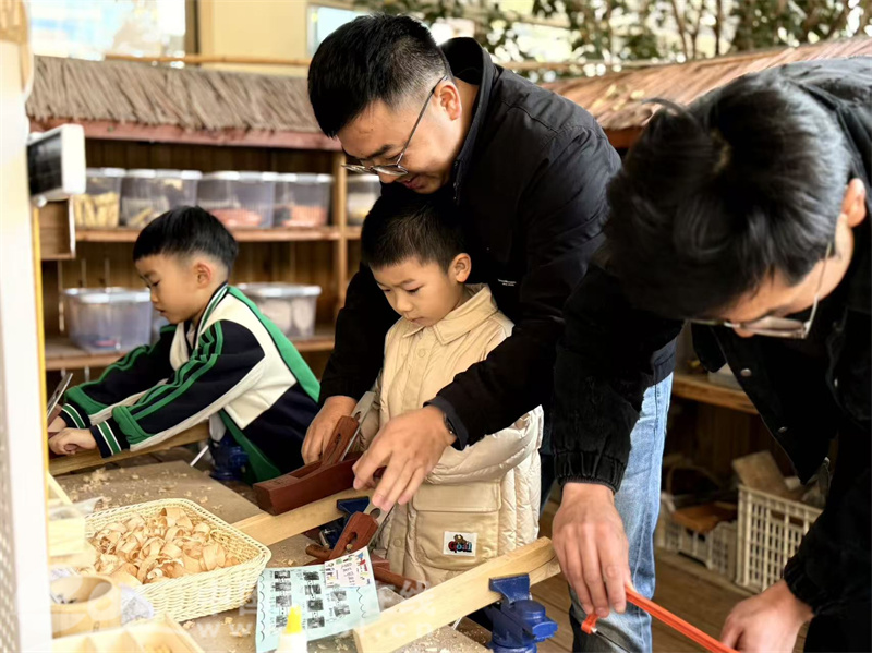 园所还打造了各具特色的游戏场域,将古朴的传统自然元素与前沿的现代科技体验巧妙融合,为孩子们打造出一方充满惊喜的玩乐世界。家长和孩子们在“亲自然 探野趣”的氛围中共享欢乐亲子时光。九辰园区内,小木林、玩色部落、蚕桑小院、野趣厨房、骑行城市、科技馆等游戏场域同步开放,将传统自然元素与现代科技体验完美融合。