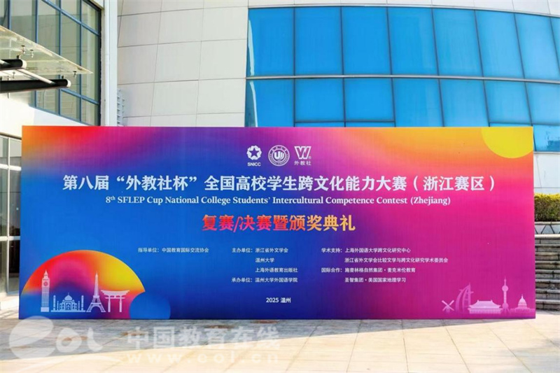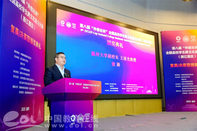 中国教育在线浙江站讯 (编辑 陈显婷 通讯员 杨智雯 何永成) 11月22日至23日,第八届“外教社杯”全国高校学生跨文化能力大赛(浙江赛区)复赛/决赛在温州大学成功举办。本次大赛由浙江省外文学会、温州大学和上海外语教育出版社联合主办,温州大学外国语学院承办,旨在探索全球化表达新路径,提升对外传播实效性。经过激烈角逐,浙江传媒学院、浙江师范大学和温州大学代表队脱颖而出,荣获“特等奖”。