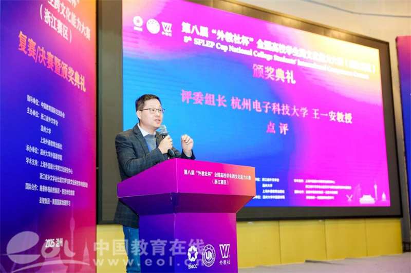 杭州电子科技大学王一安教授在赛事点评中指出,大赛有效考察了学生在跨文化语境中分析解决问题的能力。他建议选手们在内容创新和问题回答方面继续提升,以更强的综合实力迎接未来挑战。