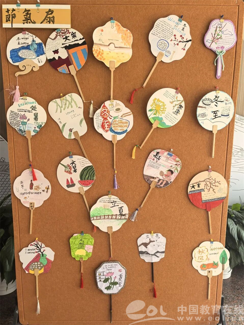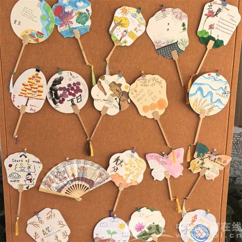 三年级的同学们开启了节气探索之旅,亲手制作了独一无二的节气团扇,绘上“立春萌芽”“立秋丰收”“大寒飘雪”的诗意景致,用简洁流畅的英语描述着节气习俗。一把把团扇串联起四季流转,在提升英语书面与口头表达能力的同时,让节气文化在笔墨与话语间浸润心田。