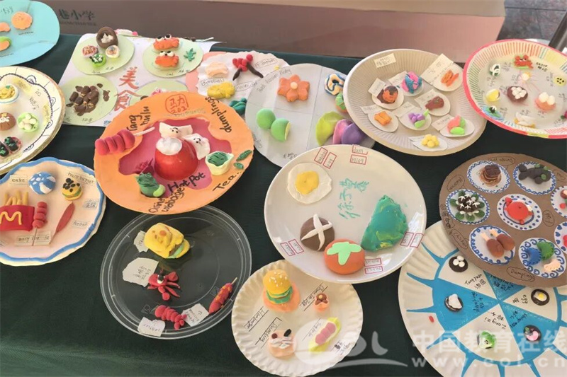 二年级的同学们手握橡皮泥,发挥想象力与动手能力,在塑料餐盘上复刻出一道道中华经典美食:饱满的饺子、圆润的汤圆、红润的糖葫芦、翠绿的青菜栩栩如生,并细心地标注出对应的英语单词。他们将传统饮食文化与英语表达巧妙融合,既锻炼了动手能力,更是在趣味实践中感受了中华美食的魅力与英语学习的乐趣。