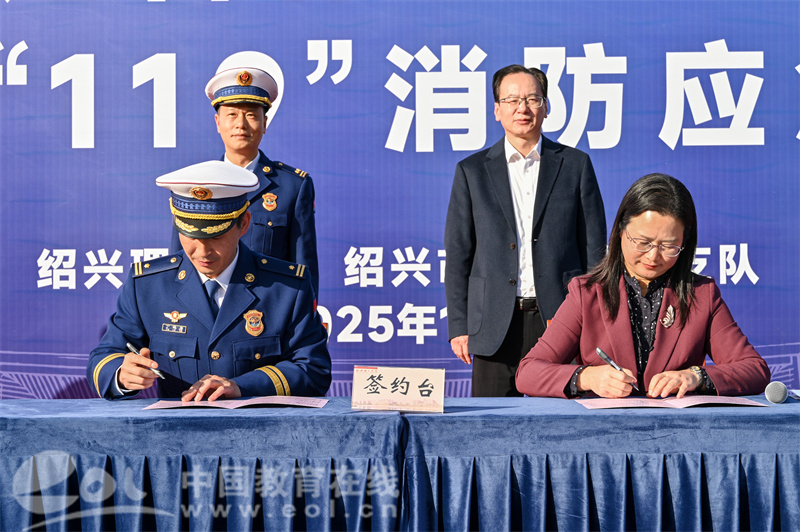 中国教育在线浙江站讯 (记者 陈显婷 通讯员 黄超军 摄影 王翊泽等)11月26日下午,绍兴理工学院联合绍兴市消防救援支队在图书馆举行2025年“119”消防应急疏散演练暨消防共建签约仪式。本次活动通过实战演练、校地共建、技能培训等形式,全面检验校园消防应急处置能力,推动校地协同构建平安校园长效机制。