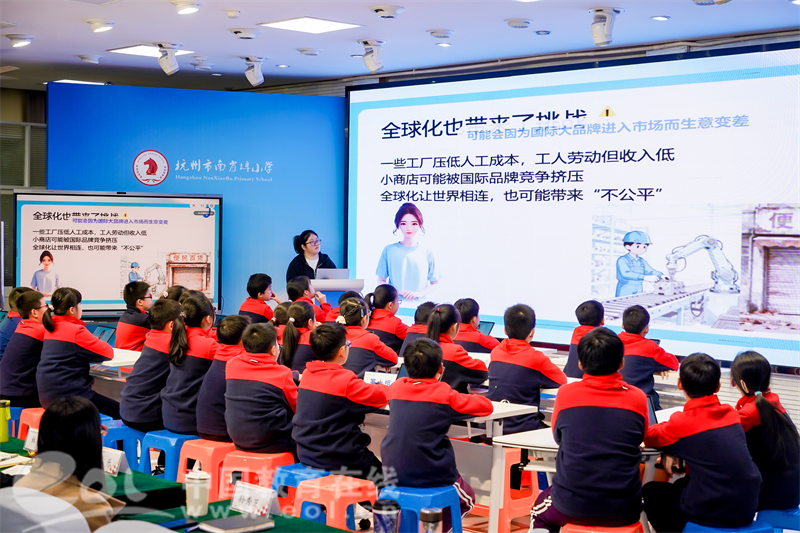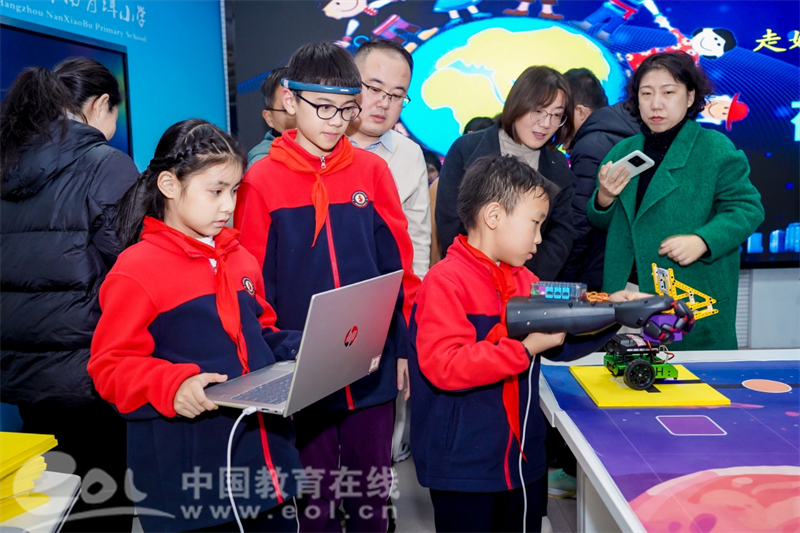 中国教育在线浙江站讯 (编辑 陈显婷 通讯员 章婧雯)11月26日、28日,济南市天桥区校长研修班赴杭州市南肖埠小学开展为期两天的深度研修活动。本次活动以“国际理解教育”为主题,聚焦脑科学、AI赋能、跨学科主题学习及家校协同等前沿议题,通过课程展示、专题报告、互动体验等多种形式,全面展现了南肖埠小学在融合育人方面的系统探索,为两地教育交流搭建了高质量互动平台。