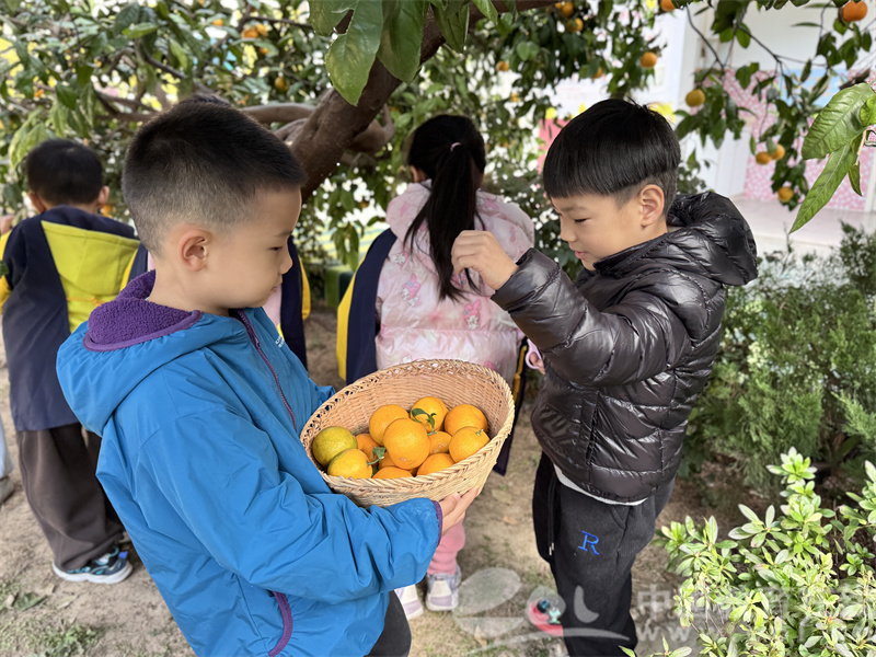 中国教育在线浙江站讯(编辑 邱彬鑫 通讯员 李亚津)初冬暖阳,杭州市培红幼儿园的橘子树枝繁叶茂,黄澄澄的果实挂满枝头,唤醒了幼儿们的好奇心与探索欲。这场以 “橘” 为媒的体验活动,融合自然探索、劳动体验与艺术创造,让教育在生活中自然发生。