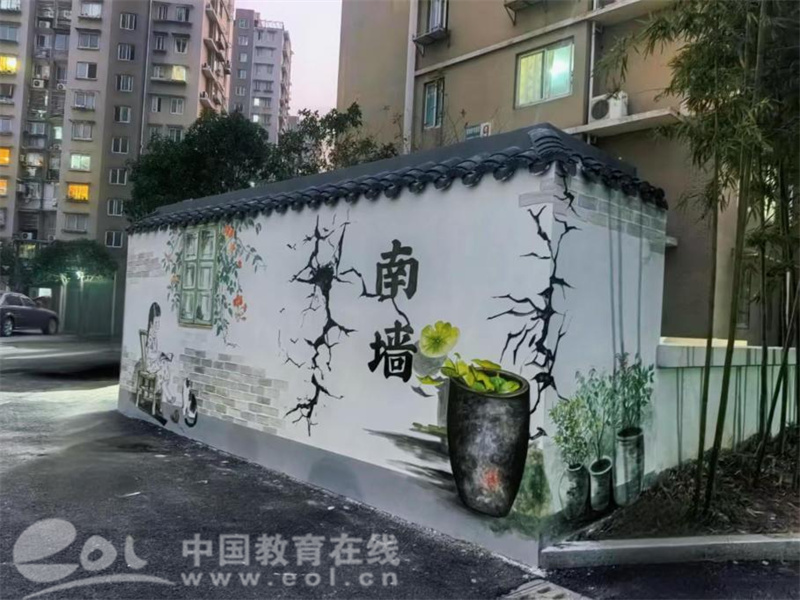 中国教育在线浙江站讯(记者 陈显婷 通讯员 胡伟)近日,一幅以“南墙”为主题的怀旧墙绘在杭州市美辰社区后珠·辰秀嘉园南区一经亮相,迅速成为居民拍照打卡的热门地标。这面由杭州市丁兰实验中学学生参与设计绘制的艺术墙,不仅以“撞裂”的创意造型引发关注,更成为校社共建、文化传承的生动实践,展现了新时代青少年通过志愿服务参与社区治理的创新模式。