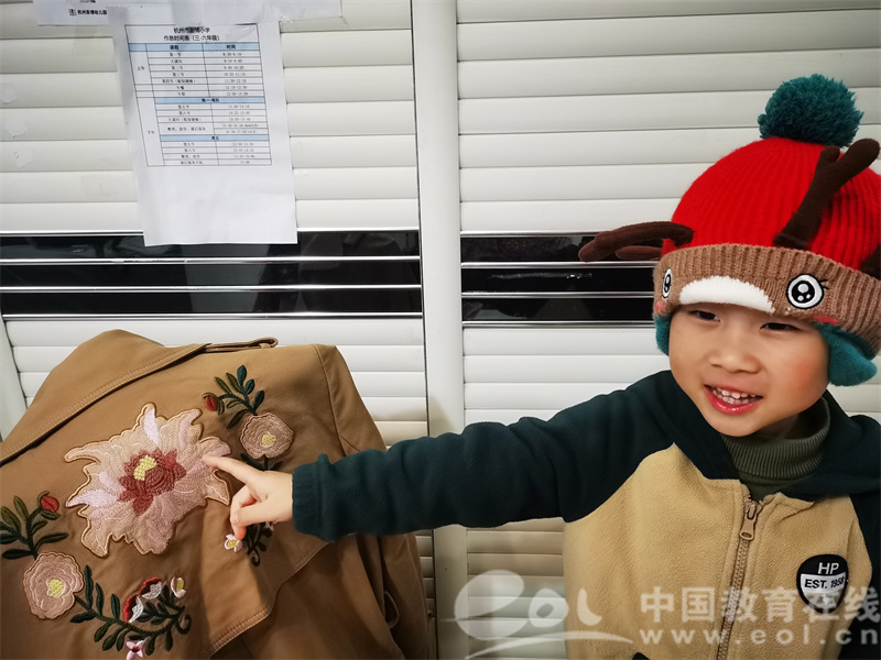 课堂兴趣很快延伸到生活中,孩子们化身“小小侦探”,在家中找到被子绣字、衣物刺绣装饰、帽子字母绣等物品,真切体会传统工艺与生活的紧密联系。部分小朋友还走进博物馆,与刺绣展品合影,在潜移默化中加深了文化认知。