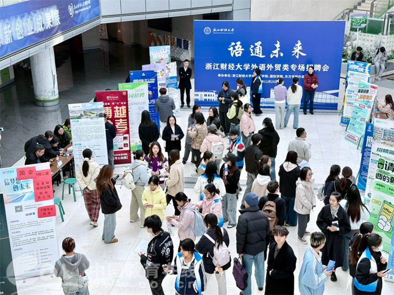 近日,浙财大外语学院举办“语通未来”外语外贸类专场招聘会,现场,像小李这样快速找到心仪岗位的学生不在少数。这场汇集世界500强、行业龙头企业的专场招聘,让外贸销售、跨境电商运营、AI语言服务等岗位精准对接需求,让毕业生将数周的求职周期压缩至数小时,实现高效求职。