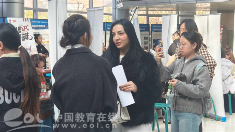 人才供需的深度适配,成为招聘会最亮眼的特色。教育科技企业推出的“AI语言学习导师”等新岗位,要求应聘者既精通外语又懂技术设计,恰好匹配学校“数智技能+语言能力”的培养重点;进出口企业渴求能上谈判桌、懂跨境电商、了解当地文化的“实战派”,浙财学子“既懂语言又懂商务”的跨界优势,让企业招聘负责人连连称赞;“一带一路”共建国家的留学生则凭借母语优势和跨文化背景,成为企业争抢的“香饽饽”,多家企业现场专门抛出橄榄枝。“浙财大的复合型培养模式精准契合了我们的需求,招到的学生很快就能上手国际业务。”一位参会企业的HR直言。