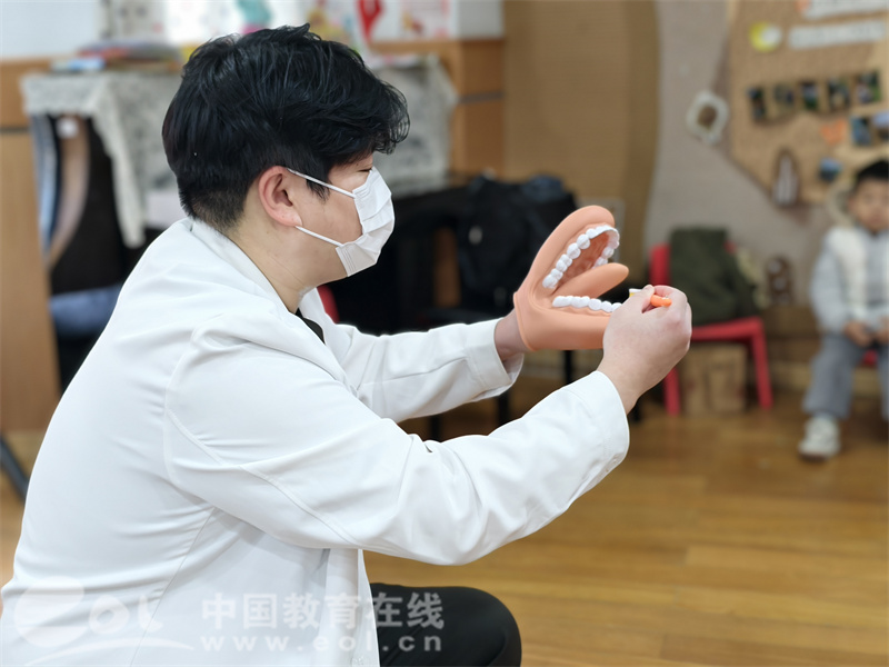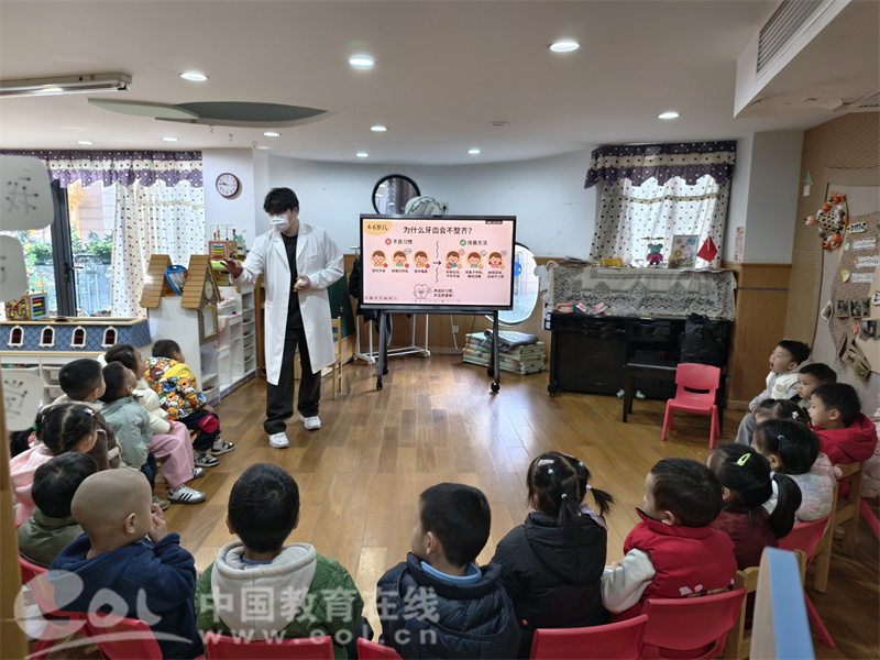中国教育在线浙江站讯 (编辑 鲁少辛)为帮助幼儿树立正确的口腔健康观念,掌握科学护牙方法,近日,杭州市娃哈哈幼儿园特邀专业牙医团队开展了一场主题鲜明、形式生动的牙齿健康科普活动。两位经验丰富的牙医叔叔亲临现场,为孩子们带来了一堂干货满满又趣味十足的护牙知识课。