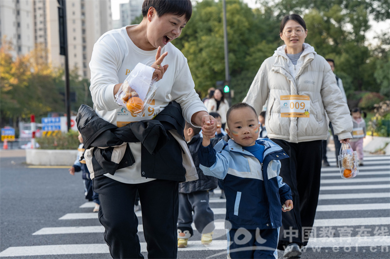 赛道上,大手牵小手,托小班宝贝勇敢迈出人生第一步,小手紧攥父母,在温柔鼓励中稳稳走完全程。中班孩子节奏稳健,不慌不忙完成2公里打卡。大班哥哥姐姐更是劲头十足,挥动小臂奋力冲刺,成功将3公里“大目标”收入囊中。