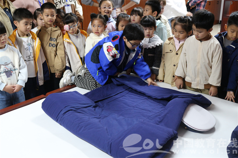 随后,消防员叔叔们展示了防火救援服。从厚重的消防头盔到耐高温的消防服,从防护手套到防滑消防靴,警官们逐一讲解每件装备的作用和穿戴方法,并邀请小朋友触摸体验。孩子们亲身体会后,深刻感受到消防员执行任务的艰辛。