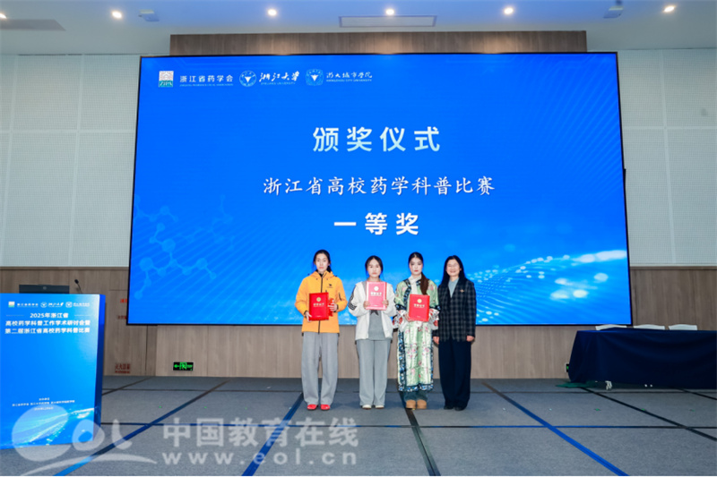 中国教育在线浙江站讯 (记者 陈显婷 通讯员 周清)12月6日,2025年浙江省高校药学科普工作学术研讨会暨第二届浙江省高校药学科普比赛在杭州举行,嘉兴大学医学院学子凭借卓越的科普创新能力和扎实的专业素养在激烈竞争中脱颖而出,荣获一等奖1项、三等奖1项、优胜奖1项。这一成绩的取得不仅是嘉大学子专业素养和综合能力的体现,更是嘉兴大学医学院长期探索并践行“以文化人、以德育才”理念,推动文化德育与专业教育深度融合的生动展现。