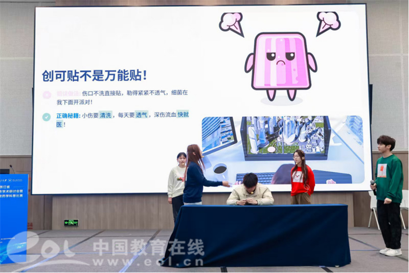 在科普宣讲比赛环节,嘉兴大学团队巧妙地将文化创意与科学传播相结合。荣获一等奖的情景剧作品《头孢配酒》,创新性地借鉴经典影视叙事风格,以生动情节和鲜明人物,将严谨的用药安全知识转化为引人入胜的故事。