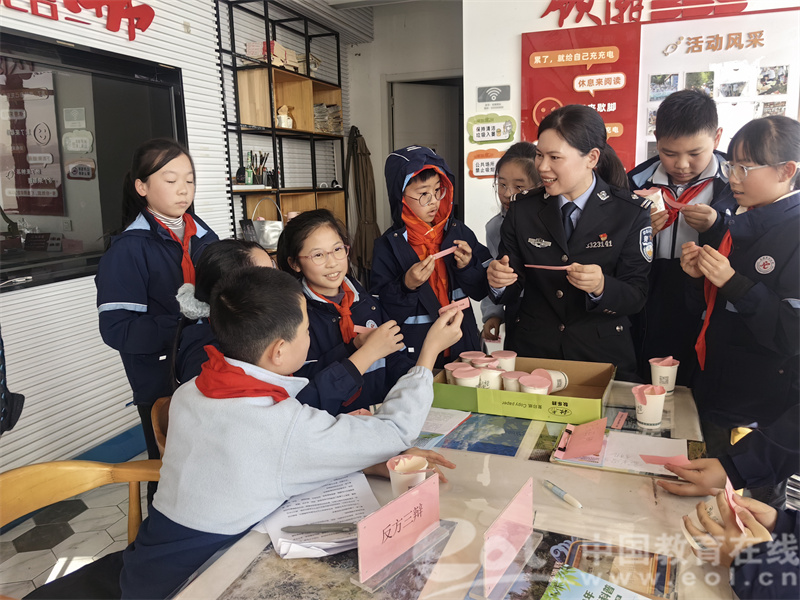 互动游戏“法治盲盒猜猜猜”更是将活动推向高潮。同学们踊跃参与,“社会百科书,生活全照顾——打一法律名称”“有话可以大胆说——打四字宪法权利”,一个个趣味谜题让大家在抢答中轻松记住法律术语。“法治徽章DIY”现场,孩子们精心挑选模具、认真敲章,亲手制作独一无二的法治徽章,在动手实践中深化法治认知,脸上都洋溢着收获的喜悦。