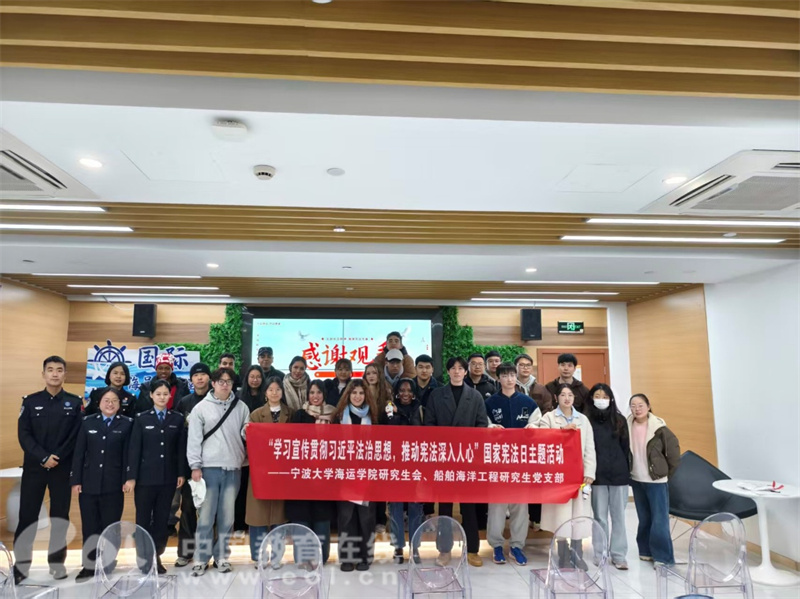 中国教育在线浙江站讯 (记者 陈显婷)近日,为推动宪法深入人心的主题要求,提升宁波大学船舶与海洋工程领域师生及留学生群体的宪法意识和涉外法治素养,在国家宪法日来临之际,船舶与海洋工程研究生党支部在辅导员张淼、曾瑞让老师的带领下,走进金创社区五洲论坛,开展了一场别开生面的宪法日主题学习活动。