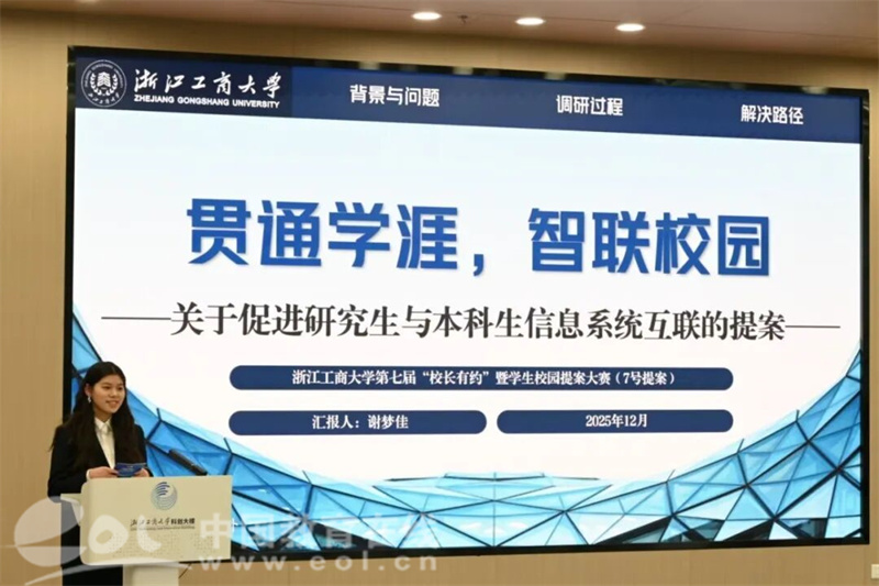 据悉,“校长有约”学生校园提案大赛已连续举办七届,累计征集提案近500份,推动70余项校园民生实事落地。这一平台不仅解决了具体问题,更培养了学生的责任意识与治理能力,让“人人都是建设者、创新者、共享者”的理念深入人心。通过师生共同努力,“在商大看见未来,未来在商大实现”的愿景正逐步变为现实。