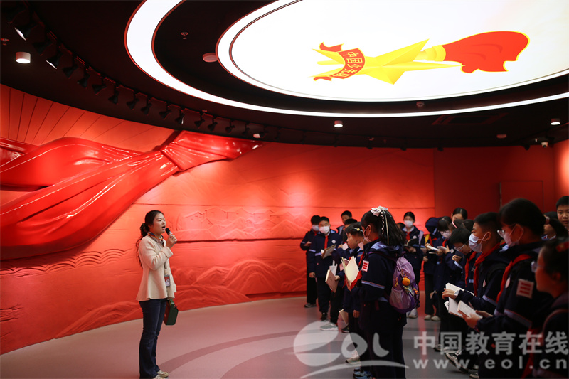 12月7日9:30,队员们准时在杭州青少年活动中心报到,随后走进“红领巾筑梦空间”。在这里,队员们认真的聆听讲辅导员老师讲解“沐浴在党的光辉下”“红领巾跟党走”“红领巾敬先锋”“红领巾展风采”等主题展区,在沉浸式体验中感悟红色精神。队员们在红领巾朗读亭、致敬红领巾、红伢儿展播亭、红色超电波、毅行者、给未来的一封信、点亮梦想、智多星、航天畅游等各式各样的学习窗口间漫游,通过趣味互动体验,深入了解少先队知识,感受高新技术中的思政教育。