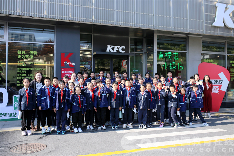 第二站,大家来到杭州唯一的肯德基低碳小绿店。肯德基的工作人员系统地为队员们科普可回收物、厨余垃圾、其他垃圾的分类标准,详细拆解饮料杯盖、纸盒、食物残渣、一次性餐具等常见物品的分类逻辑。为了巩固学习成果,现场设置了“垃圾分类实操挑战”。队员们将中餐的垃圾一一对应投入分类回收桶,工作人员在旁实时指导纠错。通过实地观察与互动体验,大家对“垃圾是放错地方的资源”有了更直观的理解。