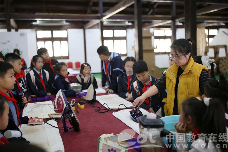 第三站,师生们前往杭州富伦生态研学基地。在这里,队员们亲眼见证了废旧物资如何通过科技手段“变废为宝”,并亲手参与了环保手工制作体验。在志愿辅导员的指导下,同学们亲手实践,一步步将纸纤维变成了一张纸。每个人都用自己制作的纸手绘完成了一个画框制作,收获了一份珍贵的礼物。在实践中感悟生态循环的智慧,不少队员表示,“原来我们每天丢弃的包装,还能变成新的纸张和产品!”