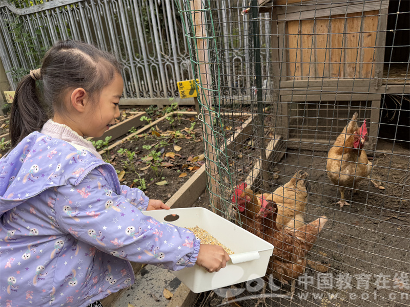 中国教育在线浙江站讯(编辑 邱彬鑫)在杭州市虎山幼儿园虎山园区的一角,住着三位备受孩子们宠爱的动物伙伴——咕咕、哒哒和喔喔。自它们在幼儿园“安家落户”以来,孩子们便主动为这些小家伙投喂专属饲料,还会蹲在围栏边兴致勃勃地观察它们啄食、踱步的憨态,不时与同伴叽叽喳喳地分享新发现。这份日复一日的悉心照料,在孩子们心中悄然播下了对生命的敬畏与热爱之种。
